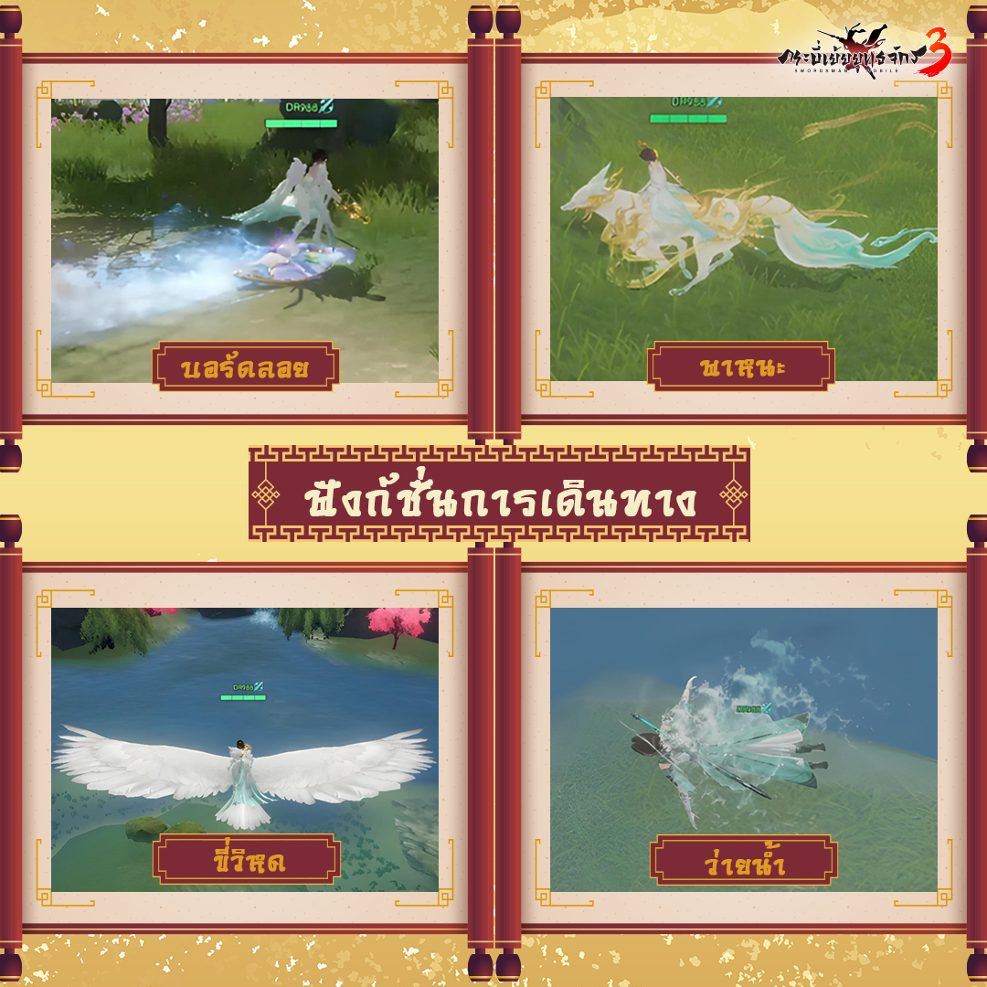 ทะยานสู่ขอบฟ้า! แหวกว่ายผ่านสายน้ำ! ควบพาหนะฝ่าเส้นในยุทธภพ! ท่านจอมยุทธ์สามารถเลือกได้อย่างอิสระที่ เกมกระเย้ยยุทธจักร3